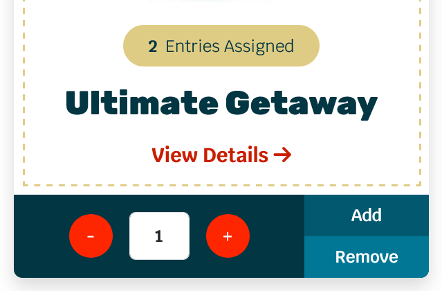 Any number of available entries can be assigned to a Prize Draw, and you have the opportunity to reassign your entries until the close of the contest. If there are any unassigned entries at the close of the contest, the system will automatically put those entries into the $5,000 Ultimate Getaway (Prize #1) draw.